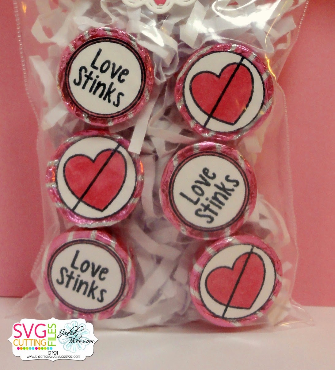 I stamped all the candies and center heart from the Cupid Repellent Candies and mounted the center one on a scallop circle cut with the Candy Charms and Banner Dies.